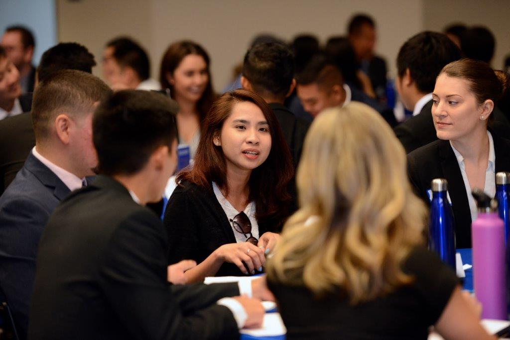Business Students Sitting Around a Table at a College Event